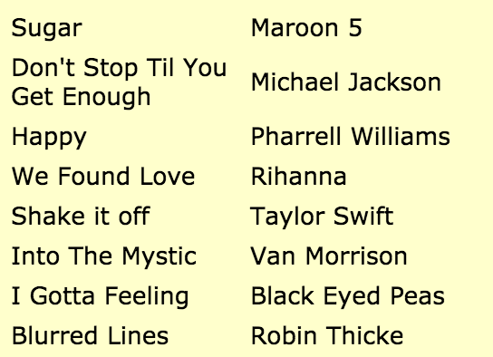 These are the list of songs, or artists you hate. The reason to compile this list is: